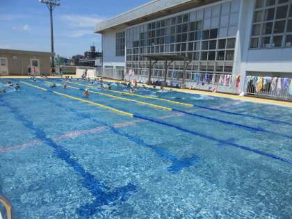 今日の3、4時間目にプールに入りました。気温が高かったため、とても気持ちよさそうな子どもたちでした。今日は、今どのぐらいまで泳げるのかを確認しました。水泳学習で、少しでも力を伸ばせるように頑張りたいです。