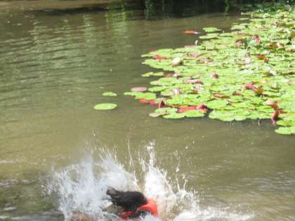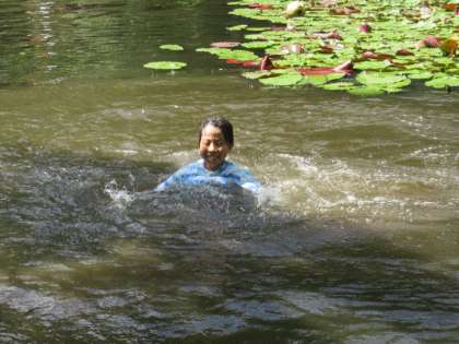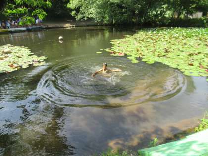 バシャン!と大きな水しぶきがあがり、水面にあがってきた子どもたちの顔はとても生き生きしていました。「楽しい!」「気持ちいい!」と、笑顔がはじけていました。