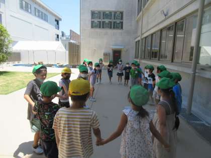 今日の4時間目は体育でしたが、暑かったので教室でストレッチ体操や体ほぐしを行いました。2人でできる体ほぐし「なべなべそこぬけ」を29人全員でやってみたいということで、挑戦してみました。