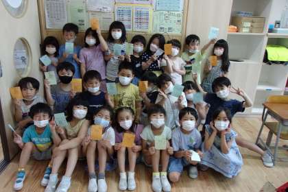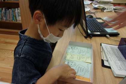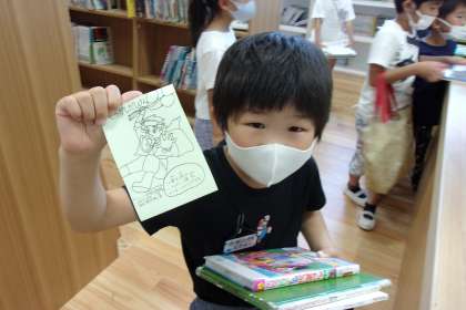 本を借りてスタンプをためると、「もう1冊借りられる券」をいただくことができました。読書に親しむ子どもたちです。