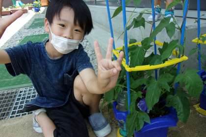 あさがおの花が、みごとに咲き誇っています。毎日のお世話のおかげですね。1日で11個も花が咲いたという人も。土日もお世話をがんばっている人がいます。