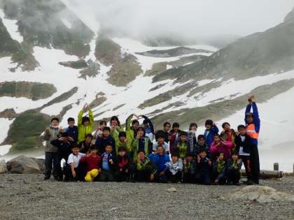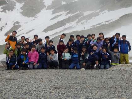 宿泊学習1日目(6年生その1) 公開日 2022/07/08 更新日 2022/07/08 6年生 7月5日(火)に6年生は立山登山をしました。 雪渓の上を慎重に歩き、全員で一ノ越まで登りました。天候悪化が予想され、今回は一ノ越までで下山しましたが、立山の大自然を全身で感じることができました。
