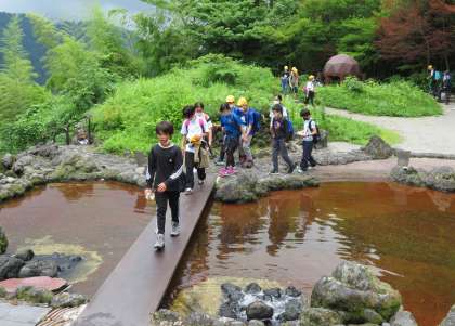 宿泊学習2日目(A班その2) 公開日 2022/07/08 更新日 2022/07/08 6年生 芦峅寺に残る宿坊建築「善道坊」で昼食をとった後、まんだら遊苑を見学しました。 まんだら遊苑では、立山地獄の世界や極楽浄土の世界を体験しました。