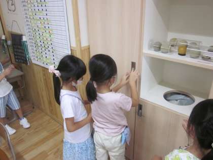 工夫を凝らしながら自分の分身である「すきまちゃん」を思い思いのすきまに置きにいく子どもたちでした。