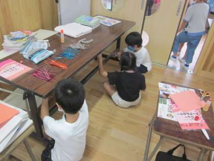 図画工作科の学習でスポンジとモールでできている「すきまちゃん」を作った子どもたち。自分と重ね合わせて作っていきます