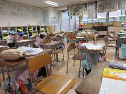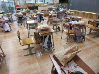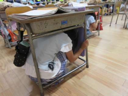 今日の4時間目にシェイクアウト訓練(避難訓練)がありました。地震が起きた時の対応の仕方を確認しました。今日は、避難することまではしませんでしたが、真剣に取り組む子どもたちです。