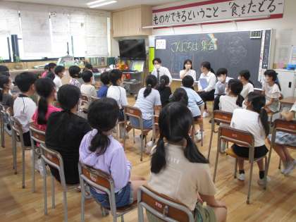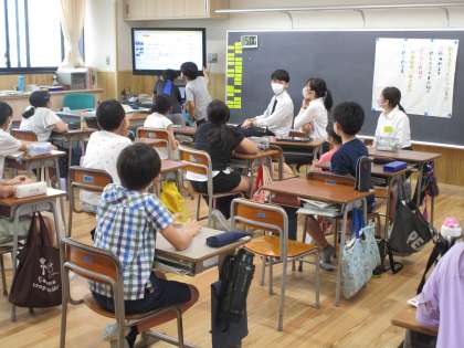こんにちは集会を行いました(5年生) 公開日 2022/09/06 更新日 2022/09/06 5年生 教育実習の先生方を出迎える集会を行いました。クラスや学校紹介をする中で、改めて自分たちのくらしている毎日が充実していることを実感している様子でした。新たな出会いに感謝しながら、子どもたちとともに学習や行事に臨んでいきたいと思います。