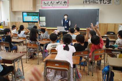 くもくん教室がありました 公開日 2022/09/12 更新日 2022/09/12 2年生 富山県警察の方を講師としてお招きし、「くもくん教室」の授業をしていただきました。水着で隠れる部分をプライベートゾーンといい、自分だけの大事な場所であると学びました。自分の身の安全を守ろうとしている子どもたちです。