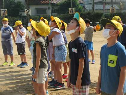国語科では、「ちいちゃんのかげおくり」を学習しています。「かげおくり」に初めて出合った子どもたちは、どんな遊びなのかと興味津々でした。よく晴れた日に、グラウンドでかげおくりをしました。実際に空に映るかげぼうしを見て、物語の様子を想像している子どもたちでした。