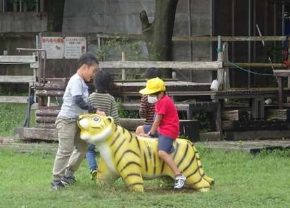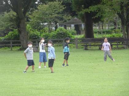 午後の活動の様子です。午後からは午前中に見られなかった動物を見に行ったり、広場で遊んだり、芝生の上に座って気持ちのいい空気を吸っていたり、自然の中で思い思いの活動をしていました。