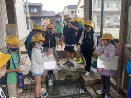 生地のまちには、たくさんの清水があります。地図を片手に一つ一つ巡り、飲み比べをしながら、それぞれの水の違いを飲み味わっていました。地域の方の善意で、家の中にある清水も見せていただいたファミリーもありました。