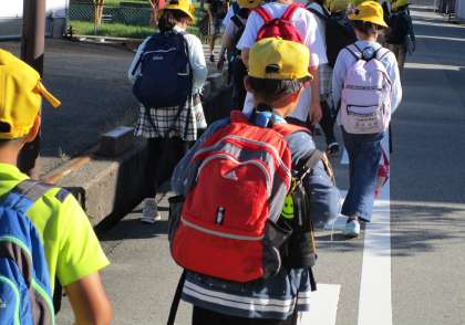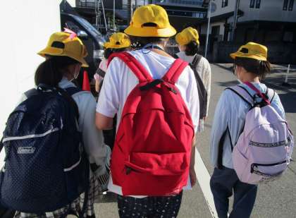 高岡で校外学習を行いました(5年生・その1) 公開日 2022/09/22 更新日 2022/09/22 5年生 時折、小雨の降る中での出発となりましたが、子どもたちは互いにファミリーを思いやり、歩きにくそうにしている仲間を励ましながら、バスに乗り、高岡へ向かいました。