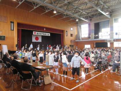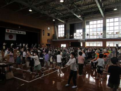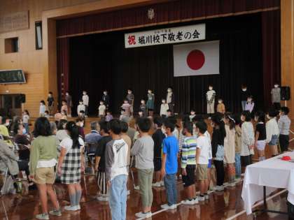 堀川校下敬老の会がありました。夏休み前から練習してきた群読「スイミー」、かけ算九九の歌、ダンス「ツバメ」を発表しました。ある子は、「今朝も家でダンス練習をしてきたよ」と話していました。参加者のみなさんに元気を届けたいという子どもたちの思いが伝わる発表でした。