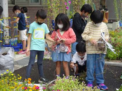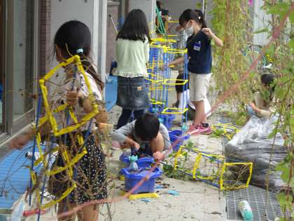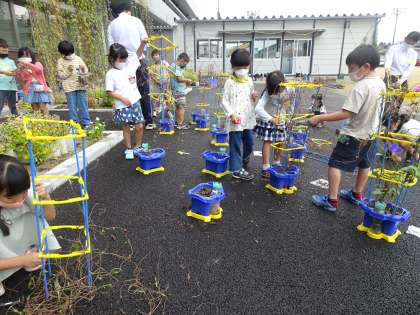 5月から育てていたアサガオの種取りをした後、つるをリースにするために束ねました。これまでたくさんきれいな花を咲かせてくれたアサガオのつるを大切にまとめている1年生です。どんな作品に仕上がるでしょうか。とっても楽しみです。