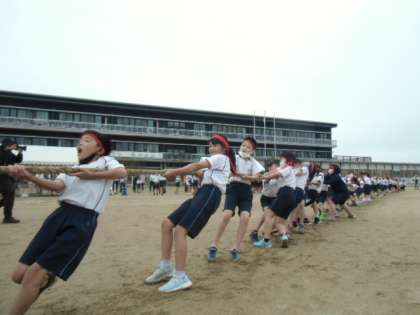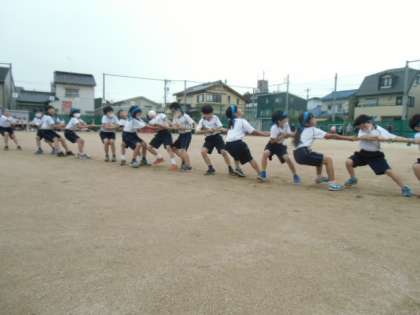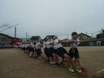 団ごとに力いっぱい綱を引きました。声を合わせながら引っ張ったり応援したりしました。