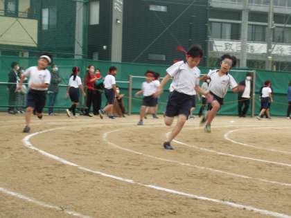 昨日、雨で順延になった4年生のスポーツウィークが行われました。1日さらに溜めたパワーを、存分に発揮しました。徒競走では、3位以内に入り、1点でも多く団に貢献しようと、ゴールめがけて力強く走る姿が印象的でした。練習の時よりも順位を上げることができて、喜んでいる姿もあれば、逆に下がってしまい、悔しさをにじませている様子もありました。