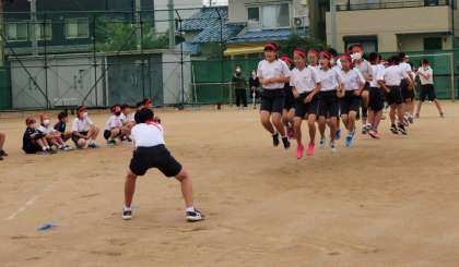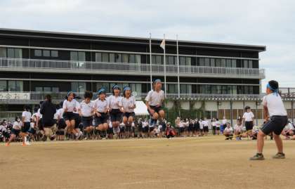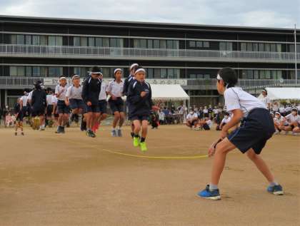長縄跳びでは、どのチームも1回でも多く跳ぼうと声をかけ合いました。