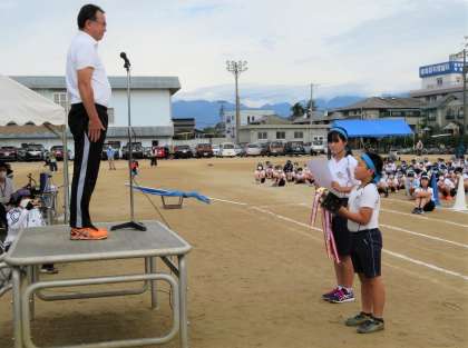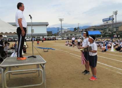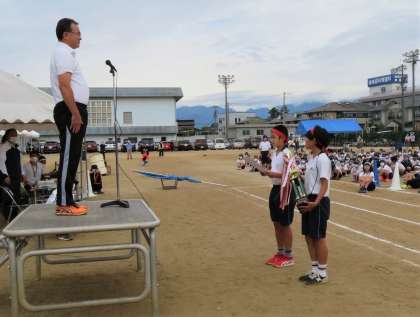 閉会式では、各団の団長と副団長が、校長先生から賞状とトロフィーを受け取りました。