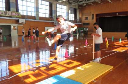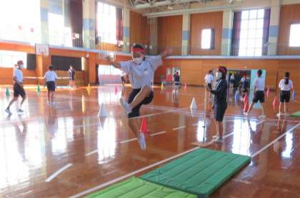 6年生は、体育科の学習で「走り高跳び」を始めました。初めての運動にどきどきしながらも、踏み切り方や足の振り上げ方に気を付けて練習しました。これからどのくらい記録が伸びるか楽しみです。