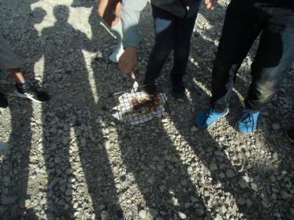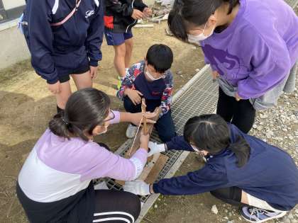 宿泊学習の野外炊飯に向けて、火起こし練習をしました。ファミリーで協力しながら小さな火種をつくり、少しずつ大きな火に育てていくことに難しさを感じていた子どもたちでしたが、その分、火がついた時の達成感を仲間とともに喜び合っている様子が見られました。