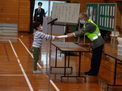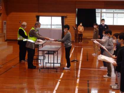 交通安全標語は、各学年の代表者が、そして交通安全ポスターは、受賞した4年生が参加しました。