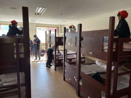 くらしをつくる宿泊学習(5年生・その2) 公開日 2022/11/10 更新日 2022/11/10 5年生 立山青少年自然の家で入所式を行いました。職員の方から宿泊学習中の宿題として、「次使う人がいることを考えて行動する」「自分のよさと仲間のよさを見付ける」というお言葉をいただき、子どもたちはそれらの目当てを達成しようと、気合い十分でくらしをスタートさせました。
