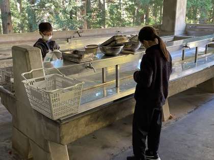 くらしをつくる宿泊学習(5年生・その6) 公開日 2022/11/10 更新日 2022/11/10 5年生 「次使う人のことを考えて行動する」という目当てを達成するために、後片付けを入念に行いました。その後のくらしの時間では、自分の役割を最後までやり切れたことや仲間の助けがあってご飯を食べられたことなど、1日のくらしをよりよく振り返ることができました。