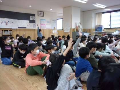 合唱をきかせていただいた後、感じたことを学年で聞き合いました。「2曲も覚えてあんなに歌えることがすごい。たくさん練習したことが伝わってきた。」「伴奏もとても上手だった。来年自分があんな風にできるか心配。」など、5年生さんの歌声や姿から、大きく心を動かされたようです。同時に、来年の自分たちの姿を少し思い描くことができたようです。