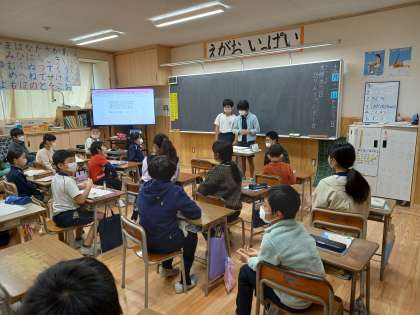 近隣ファミリー会 公開日 2022/12/08 更新日 2022/12/08 1年生 5.6年生を中心に、近隣ファミリー会を行いました。 二学期の登校を振り返り、これから雪が降ったときの安全な歩き方や、冬休みの過ごし方について話し合いました。
