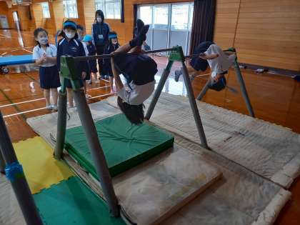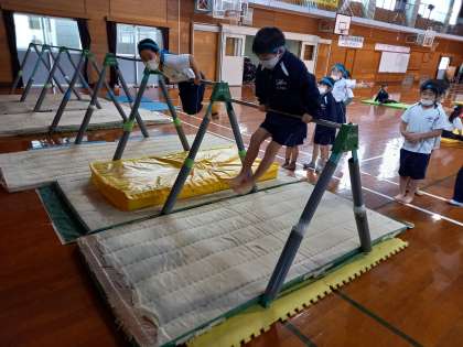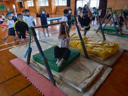 朝のトレーニングでも鉄棒を始めたおかげか、いろいろな技ができるようになってきました。次は逆上がりができるように練習していきます。