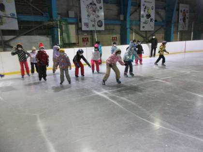 12月6日にスケート教室に行ってきました。最初は、滑れるか不安そうな子どももたくさんいましたが、職員の方の話を聞き、真似をしていくうちに、少しずつ滑ることができるようになりました。最後には、スケートリンクをすいすいと滑ることができた子どもたちです。「また行きたいな」「家族と一緒に滑りたいな」と話す子どももおり、スケートの楽しさを十分に味わうことができたようです。