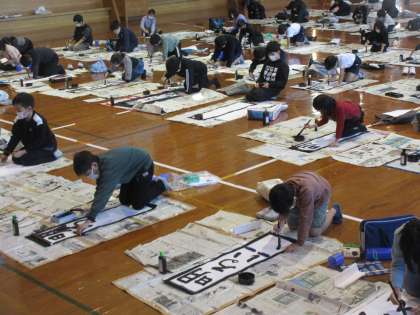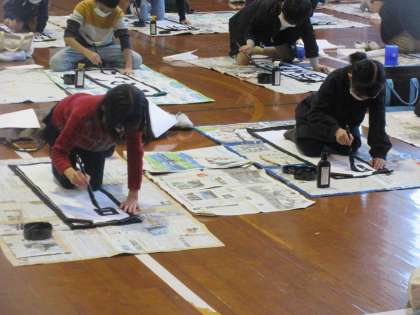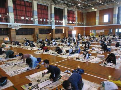 11日(水)の2時間目に書初大会を行いました。体育館で書くのは初めてでしたが、子どもたちは集中して取り組んでいました。書き上がった作品からは、冬休み中のがんばりがよく伝わってきました。