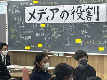 5年1組では、社会科「メディアの役割」の学習が始まりました。子どもたちは、自分の身の回りにあるメディアをいくつも思い浮かべたり、メディアが果たしてきた役割をさっそく考え始めたりするなど、一人ひとりが新しい学習に期待を膨らませている様子でした。
