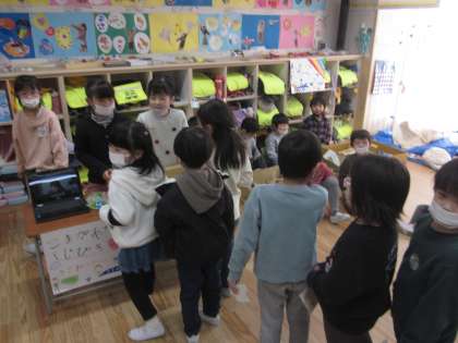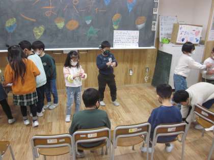 生活科の学習で他の学級の子どもたちを呼んで、パーティーを行いました。