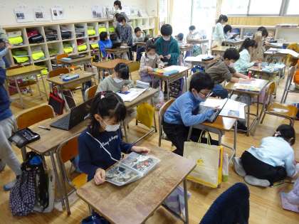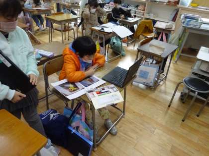 生活科の学習で取り組んでいる「アルバムづくり」が進んでいます。自分のアルバムづくりに勤しむだけでなく、家から持ってきた写真を眺めて赤ちゃんの頃の自分が考えていたことを想像してみたり、仲間が作ったアルバムを見て、その仲間と語り合ったりする姿も見られるようになってきました。まだまだ完成まで活動は続きそうです。願うアルバムの完成に向けて頑張る子どもたちです。