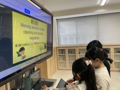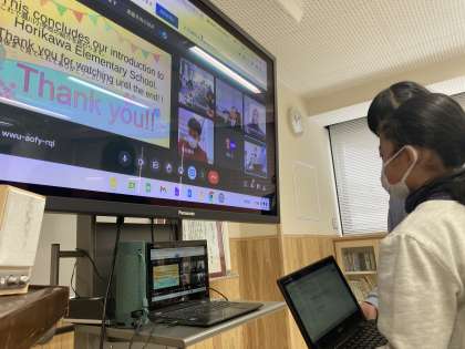 マレーシアとの交流会(4年生) 公開日 2023/02/08 更新日 2023/02/08 4年生 今日は、交流ゲームをしたり、学校や日本についての紹介を英語でしました。マレーシアの学校からは、簡単な挨拶や自己紹介をするときのマレーシア語を教えてもらいました。マレー語を真似して言う度に、拍手をくれたり、笑顔になってくれたりしました。「前の交流会よりもお互いに楽しめた気がする」と手応えを感じ、「次は日本語を教えたいな」などと、さらに交流会への意欲を高めた子どもたちでした。