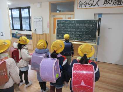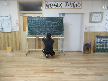 今日も子どもたちは、黒板に書いてあるメッセージを真剣に読んでいます。
