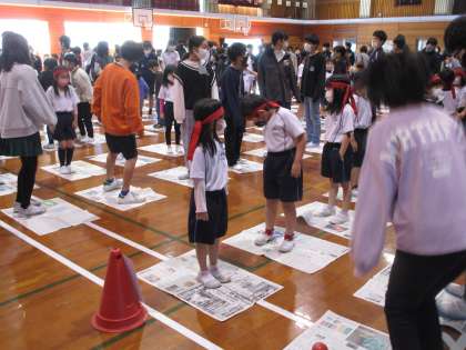 6年生と1年生の交流を企画しました(5年生) 公開日 2023/03/02 更新日 2023/03/02 5年生 6年生と1年生の仲が深まるよう、5年生の卒業プロジェクトの一環として、新聞じゃんけん大会を行いました。お互い真剣に勝負しているからこそ、どちらの学年も楽しい時間を過ごすことができた様子でした。