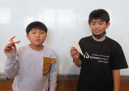 集会委員会の企画した紙飛行機大会に、たくさんの人たちが参加しました。