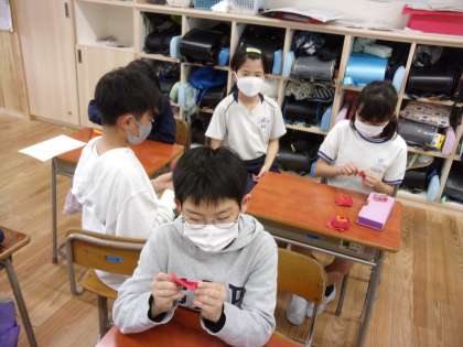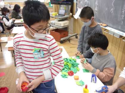 「祝卒業」「おめでとう」の文字や、胸につけるコサージュを丁寧に心を込めて仕上げていきました。4年生のパワーを総結集して、式の準備を進めていきます!