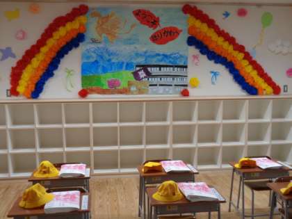 ほりかわしょうがっこうのじどうのみなさんが、にゅうがくしきのじゅんびをしてくれました。