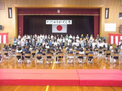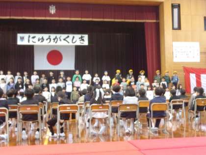 新しく小学校の仲間になった1年生の子どもたちにお祝いの言葉を伝えた2年生の子どもたち。