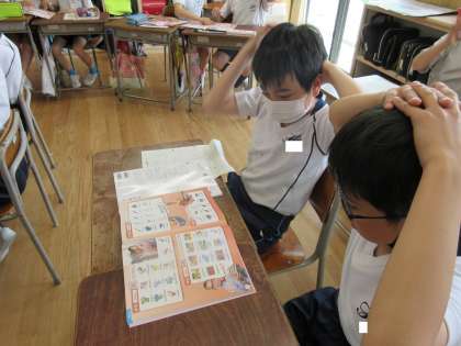 外国語の学習が始まりました。ワードゲームを通して、英単語を楽しく学んでいます。