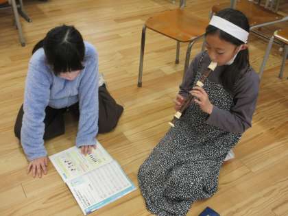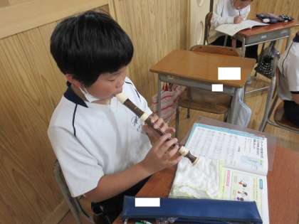 音楽科の学習では、リコーダーで「小さな約束」を演奏しています。「ソのシャープは難しいな」「休み時間にも練習しよう」とやる気満々の子どもたちの姿が見られました。
