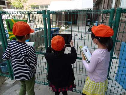 理科の学習で、寒い冬から温かい春になると、植物や生き物はどうくらしているのか、グラウンドや飼育の庭、南門に行って観察しました。