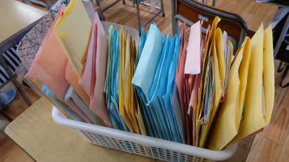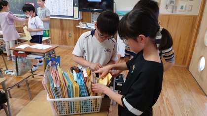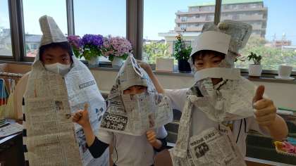 汚れないように新聞紙で服を作ったり、作ったカードを整頓したり、楽しく活動をしています。