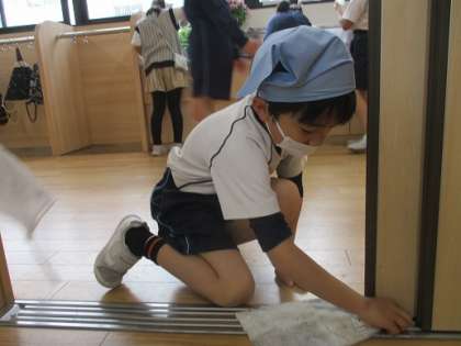 ゴールデンウイークが明け、元気に子どもたちが登校してきました。朝活動では、連休中にたまった汚れを丁寧に掃除していました。