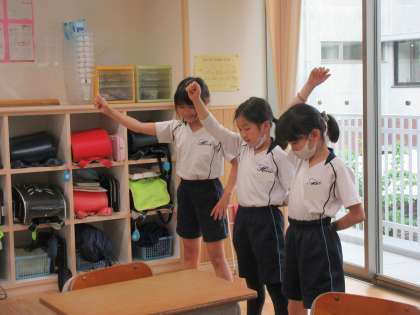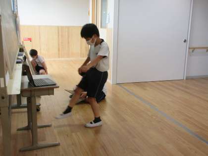 体育科の学習で、リズムダンスを行いました。クロムブックを使って動画を探して、動きを確かめながら仲間と踊りました。初めは恥ずかしそうにしていた子どもたちも、少しずつ動きが大きくなってきました。仲間と一緒に体を動かす楽しさを感じていました。