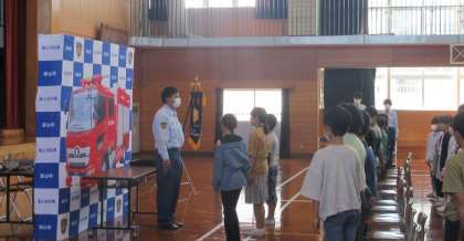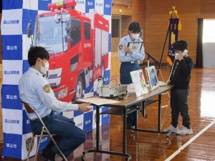 富山消防署の方々にお越しいただき、防災について学びました。今日からのくらしに生かしていこうとする子どもたちの姿が見られました。