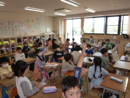 読み聞かせの後の聞き合いでは、主人公おおかみの行動やぶたたちの様子など、気が付いたことや思ったことを伝え合いました。また、挿絵の微妙な移り変わりに気が付くなど、みんなじっくりとお話の世界を味わいました。